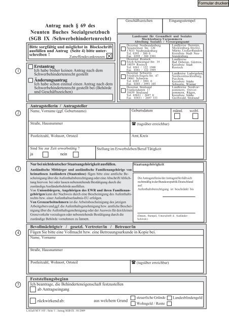 Versorgungsamt Rostock Antrag Schwerbehinderung kostenlos als PDF downloaden