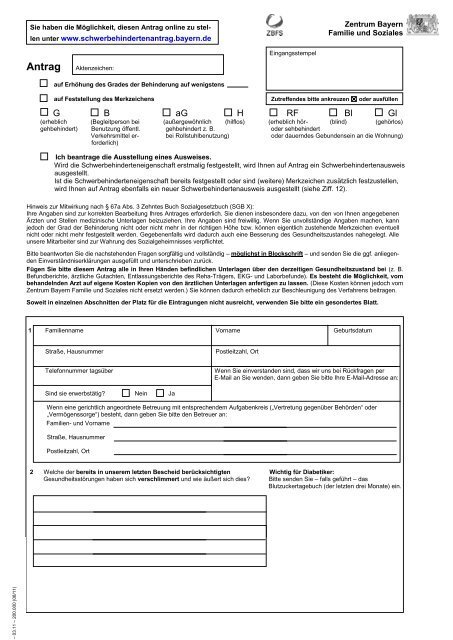 Kostenloses PDF zum Antrag Grad der Behinderung Bayern herunterladen und einfach ausfüllen. Erfahren Sie, welche körperlichen, geistigen oder seelischen Gesundheitsstörungen berücksichtigt werden.