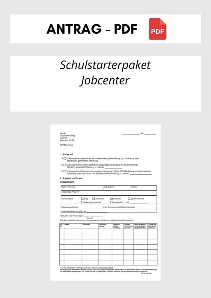 Schulstarterpaket Antrag Jobcenter kostenlos als PDF downloaden