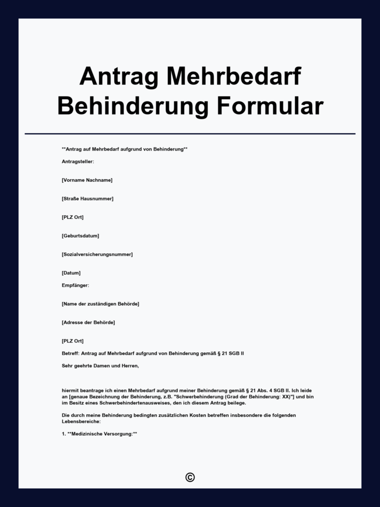 Kostenloses PDF zum Antrag auf Bürgergeld Mehrbedarf Behinderung nach SGB II herunterladen und einfach Ihren Antrag korrekt ausfüllen für finanzielle Unterstützung bei Behinderung.