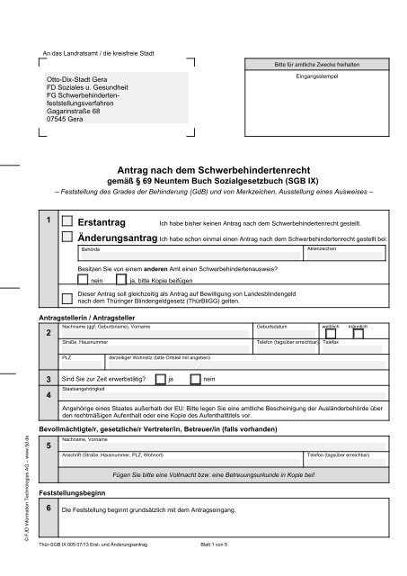 Kostenloser Download des GDB Antrag Thüringen als PDF. Beantragen Sie Leistungen für Schwerbehinderte einfach und schnell mit unserem praktischen Formular inklusive Anleitung.