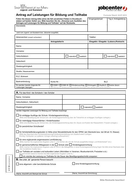 Jobcenter Antrag Bildung und Teilhabe Mittagessen kostenlos als PDF downloaden