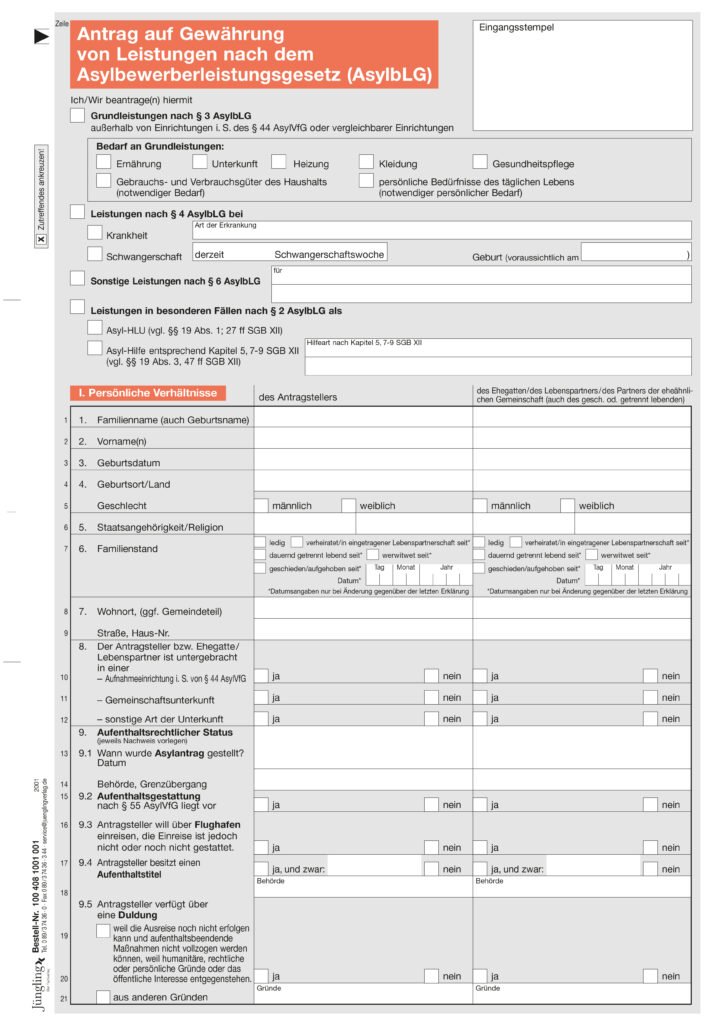 Kostenloses PDF: Antrag auf Asylbewerberleistungen herunterladen und einfach ausfüllen. Praktisches Formular für Asylsuchende zur Beantragung von staatlichen Unterstützungsleistungen in Deutschland.