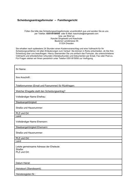 Kostenloser Download des Antrags auf Scheidung als PDF. Enthält alle wichtigen Angaben wie Antragstellende, Trennungsdatum und weitere notwendige Informationen für eine einfache Antragstellung.