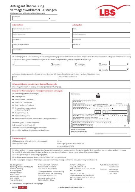 Antrag auf vermögenswirksame Leistungen kostenlos als PDF herunterladen. Einfach ausfüllen und an die LBS, 48130 Münster, per IBAN DE02400555550000060200 senden.